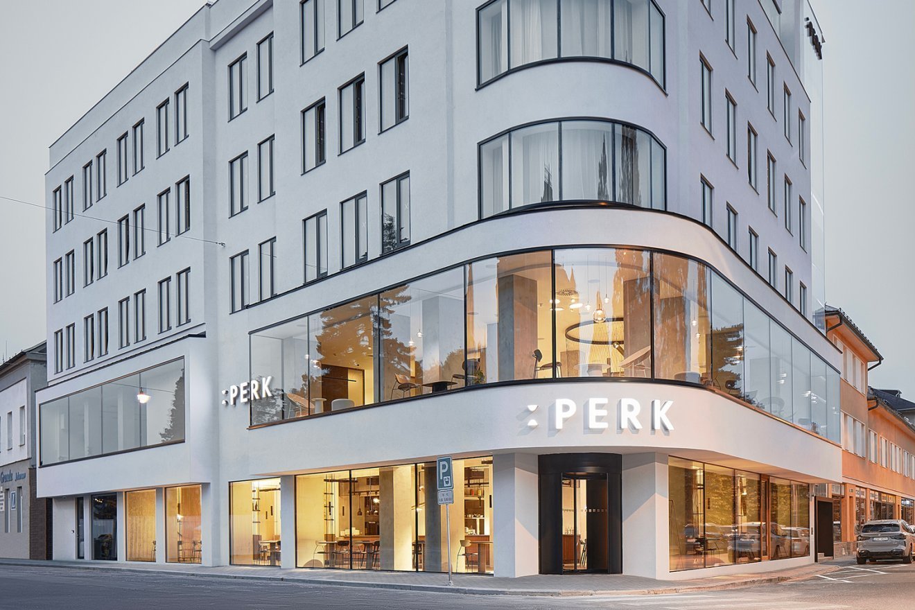 Hotel Perk byl kompletně zrekonstruován z původního objektu Grand, který byl postaven v roce 1931 ve funkcionalistickém stylu. Citlivá obnova s respektem k architektonickému dědictví byla dokončena po téměř dvou letech práce, a hotel se znovu otevřel v červnu 2023. Dnes kombinuje prvky dobového funkcionalismu s moderním interiérovým designem, který získal v roce 2024 ocenění Veřejný interiér roku. Hotel se svou restaurací Perk sází na lokální gastronomii, osobní přístup k hostům a akcentuje detaily ať už ve vybavení nebo péči o klienty.